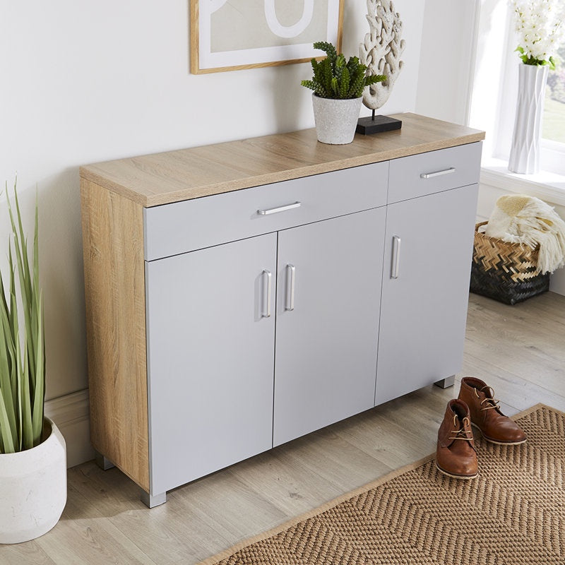 جزامة ام دي اف وستانلس ضلفتين و درجين بيج و رمادي - 105×40×120 سم