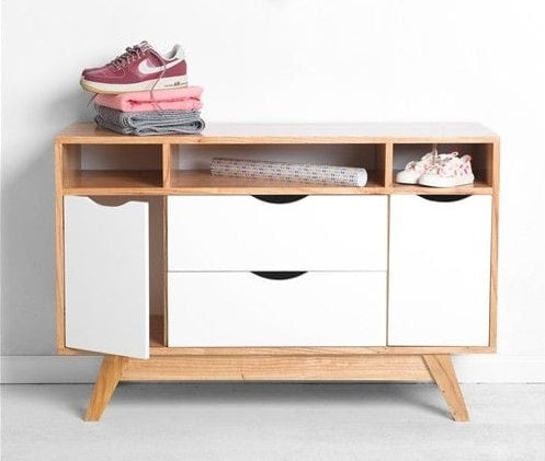 جزامة خشب ام دي اف و درجين بيج و أبيض - 40×90×100 سم