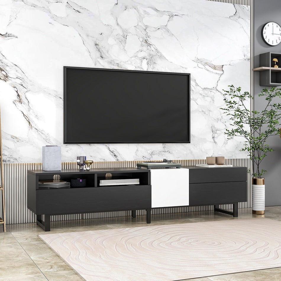 وحدة تلفزيون ام دي اف ومعدن اسود و ابيض - 50×40×180 سم