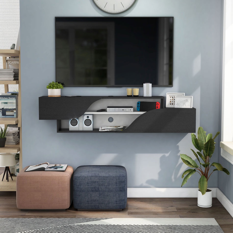 وحدة تلفزيون حائط ام دي اف أسود و أبيض - 30×25×120 سم